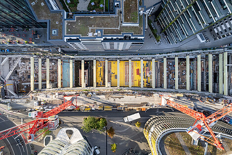 Die Arbeiten werden auf dem Baufeld Güterplatz an Kran 3 durchgeführt. Bei Kran 3 handelt es sich um den Kran, der auf der östlichen Seite des Baufeld in Richtung Güterplatz/Osloer Straße steht (vor dem Grand Tower; linker Kran auf dem Bild).