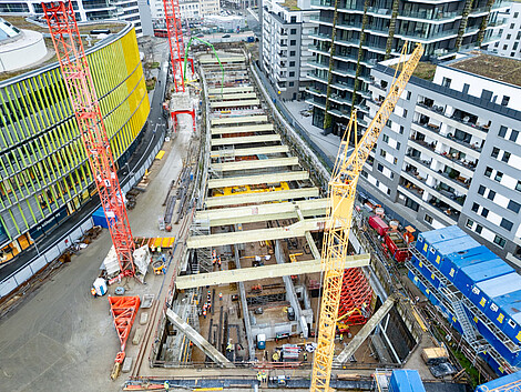 In Zusammenhang mit den laufenden Arbeiten zur Herstellung der Stationsdecke für die zukünftige Station „Güterplatz“ wird am Donnerstag, den 12.03.2026, ein weiterer Abschnitt der 2,30 Meter mächtigen Decke betoniert.