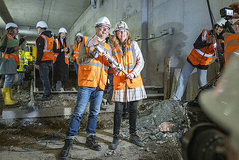 Die Tunnelpatin Franziska Reichenbacher ist mit von der Partie, wenn die Verbindung hergestellt wird und ein weiterer Meilenstein geschafft ist. „Am Ende des Tunnels kommt Licht – und hier auch noch das Bestandsbauwerk. Wieder ein Meilenstein an dieser spannenden Großbaustelle mitten in Frankfurt geschafft und ich gratuliere Ihnen allen zum finalen Durchbruch. Vielen Dank auch dafür, dass ich seit 2019 ein Teil dieser Reise für noch mehr Mobilität in Frankfurt sein durfte“, freut sich Franziska Reichenbacher.