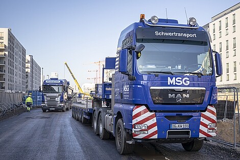 In der Nacht von Montag, 13. Mai, auf Dienstag, 14. Mai 2019, wird ein Schwertransporter weitere Segmente der Tunnelvortriebsmaschine anliefern. Abgeladen werden die einzelnen Komponenten erst am frühen Morgen.